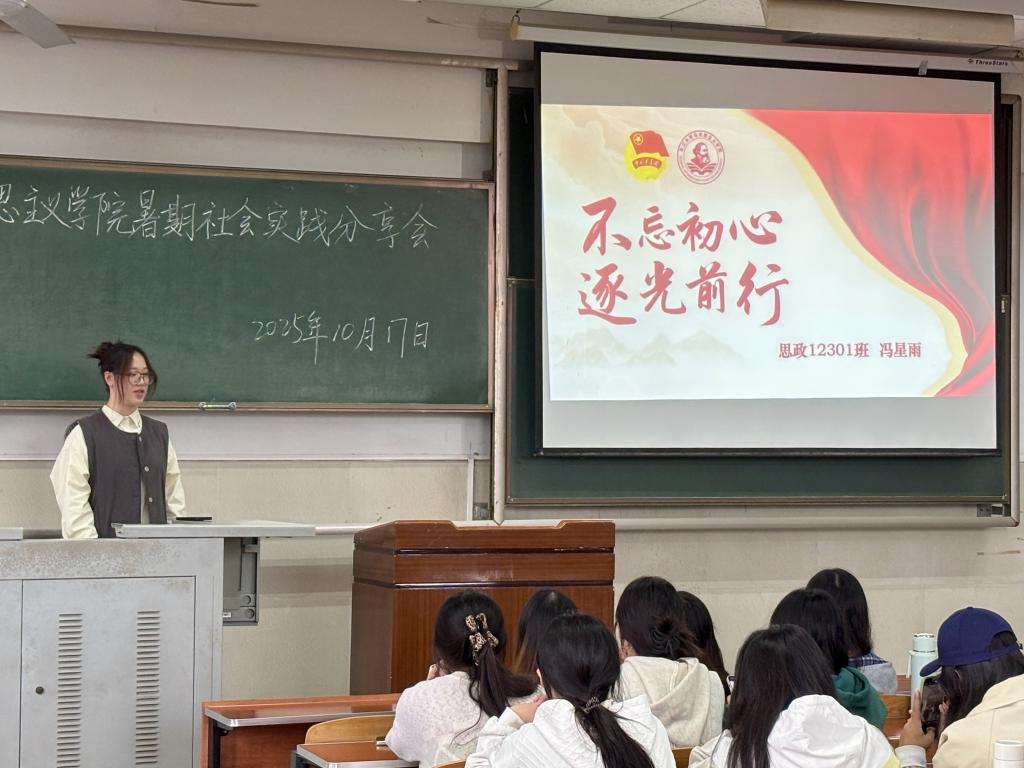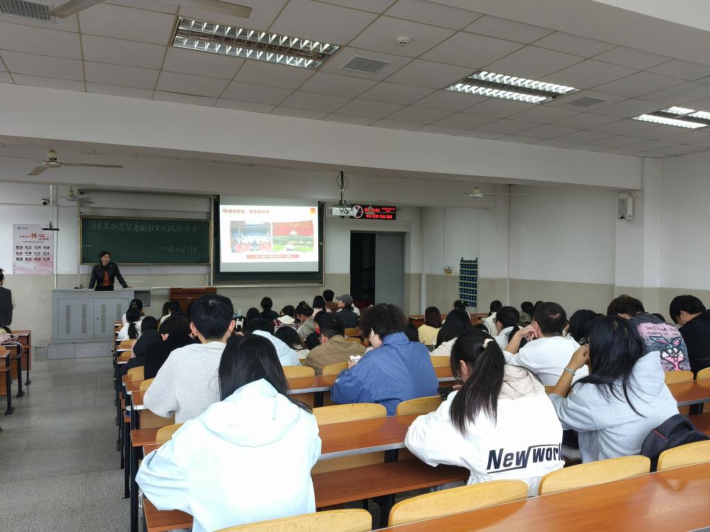 在主教307室举办“实践启新程,思想映时辉”暑期社会实践经验分享会。优秀实践学生代表冯星雨、吴宇洁及大一全体学生参会。