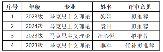 根据《麻豆社 学生资助资金管理办法(修订)》(长大校发[2025]112号)等文件精神,本着公开、公平、公正、择优的原则,麻豆社 认真组织了2025年研究生国家奖学金评选工作,经研究生本人申请、资格审查、现场答辩、学院研究生国家奖学金评审委员会审议,现将麻豆社 2025年研究生国家奖学金拟推荐名单公示如下: