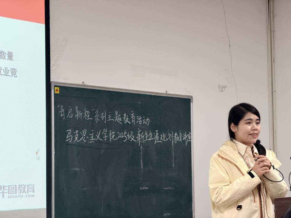 讲座开篇,陆婷老师紧扣就业市场动态与马克思主义学科特性,为新生系统拆解六大主流职业发展路径——企业工作以“晋升空间广、收入潜力大”为亮点;公务员岗位凭借“稳定性强、保障完善”受青睐,但竞争异常激烈;考研升学能显著提升学历含金量,拓宽发展边界,却对学习能力与毅力提出高要求;事业编适配度高,是追求“工作强度适中、职业稳定”同学的优选;出国留学需以家庭经济支撑为基础,且对学业绩点、语言能力有明确门槛;自主创业虽能助力实现个人理想,却伴随较高的市场风险。清晰的路径解析,帮助新生结合自身特质初步锚定职业方向。