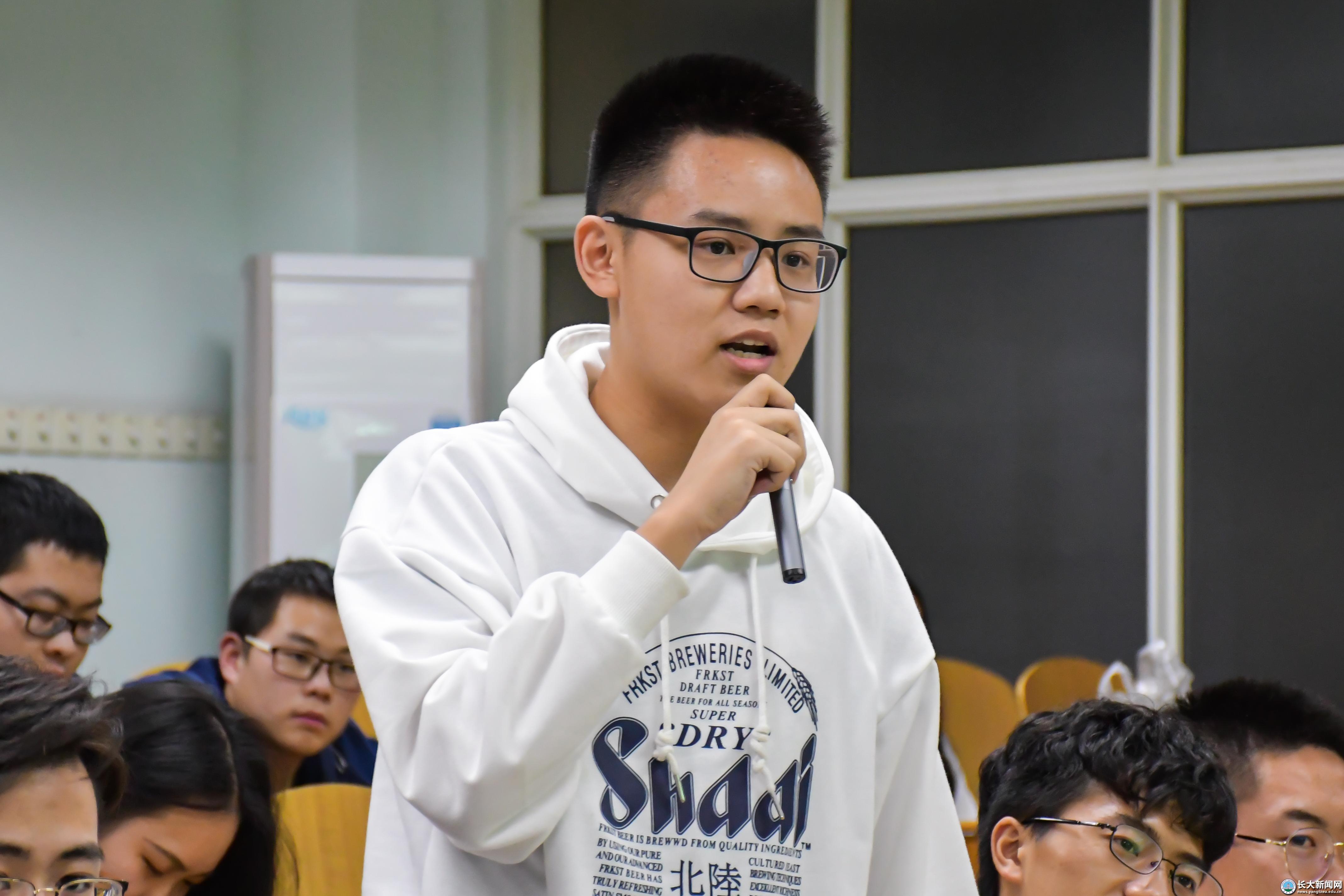 “白鳍豚的今天会是江豚的明天吗?”“在生态文明建设的大背景下,长江的生态文明建设又该何去何从?”……肖老师在抛出一连串问题后说道,西方国家的“先污染,后治理”是建立在污染转移的基础上,这与大国担当和当今中国梦是背道而驰的。中国给出的一个基本遵循是:“共抓大保护,不搞大开发,生态优先,绿色发展。”“如果经济发展和环境保护发生矛盾怎么办?”肖老师用楚源集团从衰落到重振和各行各业“绿色”盛行的事例证明经济发展和环境保护是可以兼容的。“改变不了大环境,就改变小环境,做自己力所能及的事。”最后,她引用名言作结,并激励大学生从小事做起,为保护长江、保护环境尽一份力。