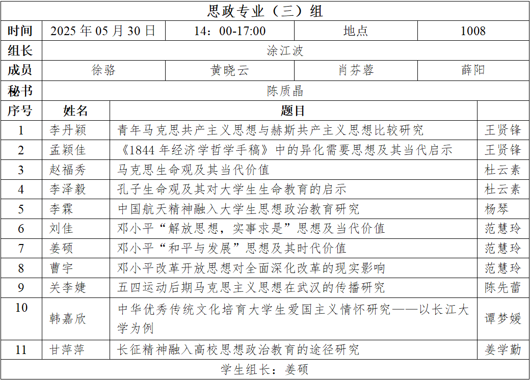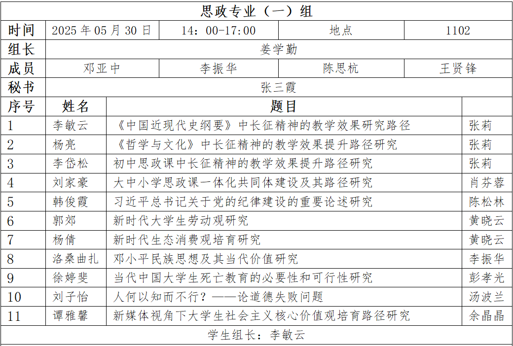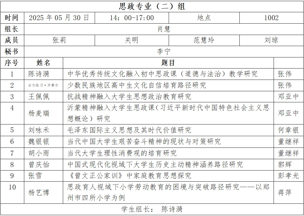 2025届思想政治教育本科毕业论文第二次答辩安排