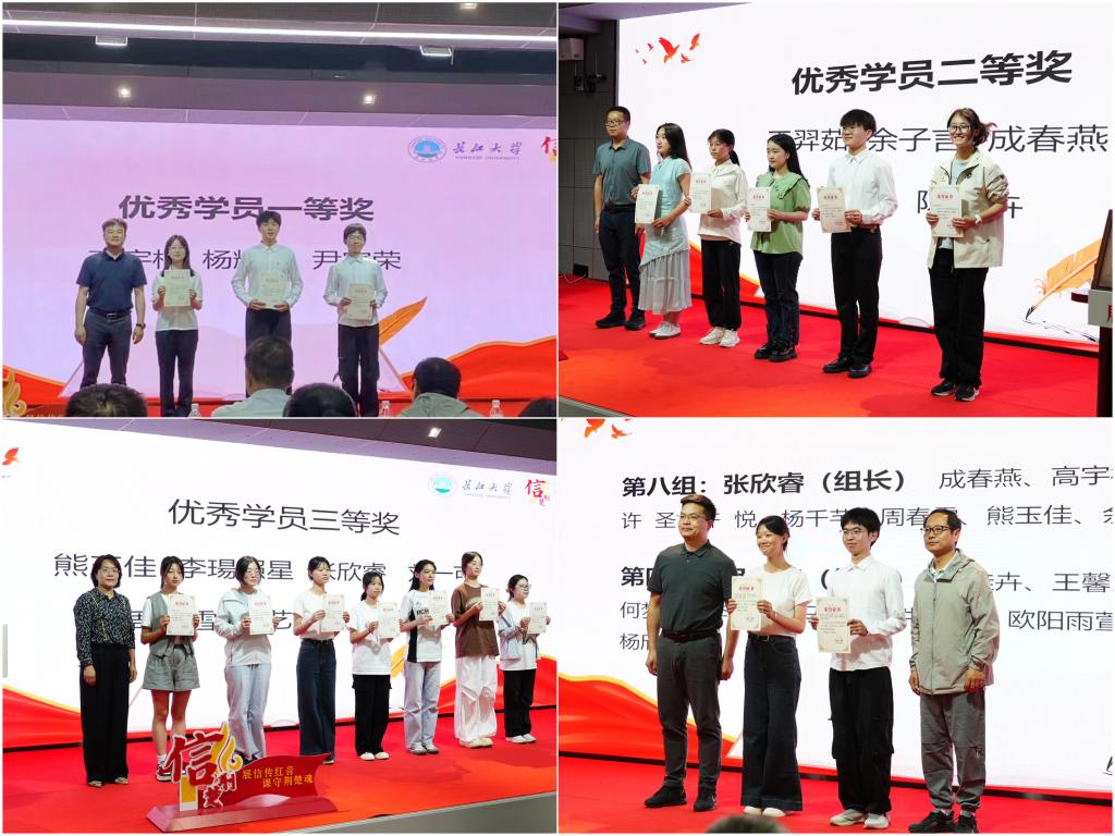 课程结束后还举行了《信•荆楚》第二季结课仪式暨颁奖典礼。15位同学、2个优秀小组获得表彰,相关职能部门负责人为获奖集体、个人颁发荣誉证书。