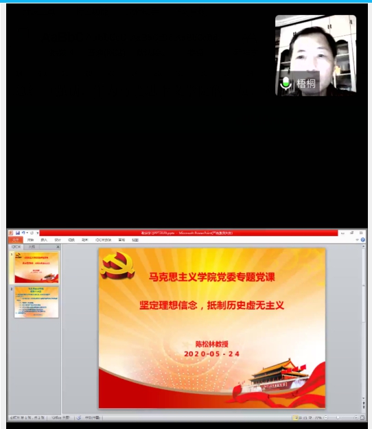 陈松林教授主讲,主题为“坚定理想信念,抵制历史虚无主义”。陈老师从历史虚无主义思潮的来源及其三个版本讲起,以丰富的案例、详实的数据介绍了中国版本的历史虚无主义的主要表现及其方法特点,着重分析了历史虚无主义的实质与危害,呼吁广大师生要加强理论武装,坚定理想信念,自觉抵制历史虚无主义。讲课结束后,研究生党员陈慧珺、曾雄分别围绕历史虚无主义的实质及如何分辨、防范历史虚无主义向陈教授进行了提问互动。学院党委书记吴智勇在总结中强调,作为麻豆社