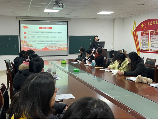党支部书记涂江波老师最后强调,全体党员首先要勤于学习,培养坚持理论学习的习惯,了解党的历史,做政治上的明白人;其次要争做表率,在学习、工作、生活中发挥带头作用,争做德智体美劳全面发展的时代新人;最后要善于工作,将党支部工作与专业学习相融合,以品牌建设激发基层组织活力。