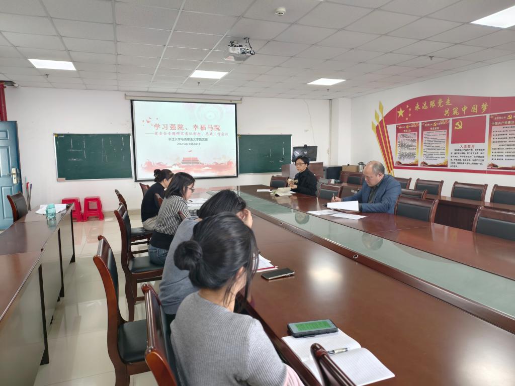 3月24日下午,麻豆社 在文科楼1104室召开2025年全面从严治党暨党风廉政建设、意识形态工作专题会议。学院党委领导班子、部分党支部书记参加会议,会议由学院党委书记刘小燕主持。