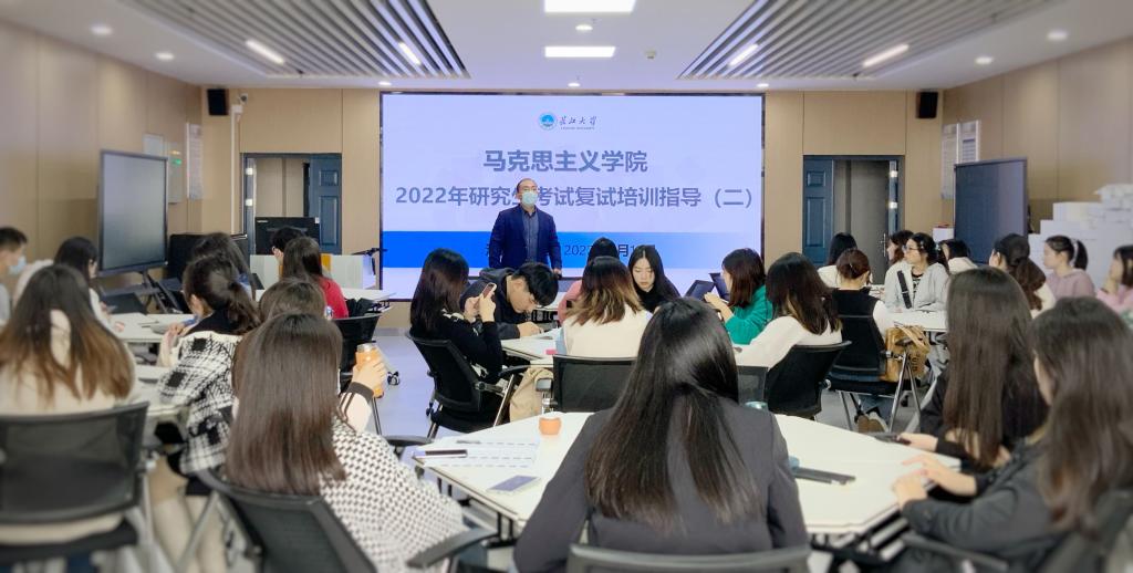 于文科大楼1008举办2022年第二场研究生考试复试培训指导。本次培训邀请学院科研副院长涂江波为大家做指导。辅导员李敏和全体考研学生到场。