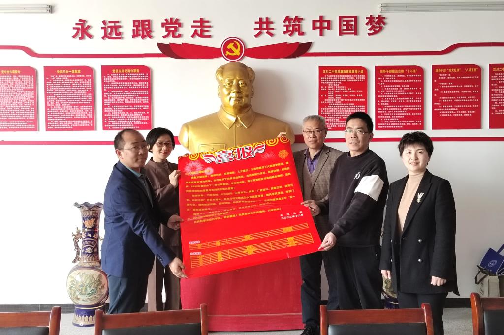 走访中,宣传小组与两校领导、年级主任和班主任进行了深入的探讨交流,对两校2022年报考麻豆社 情况做了报告,并送上喜报和纪念品。宣传小组还邀请两校参加第二届百位中学校长进长大活动。