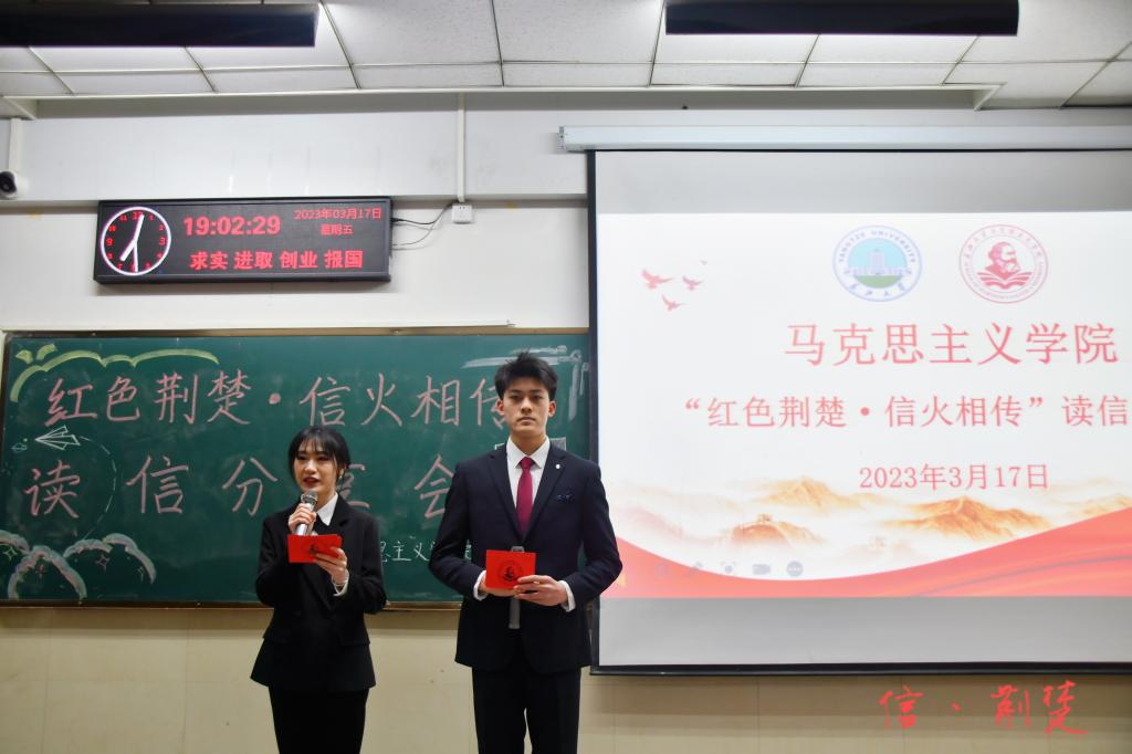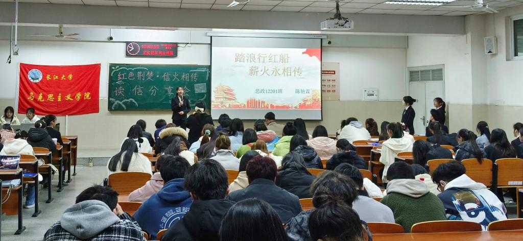 师生在12教203齐聚一堂,举办“红色荆楚·信火相传”读信分享会。