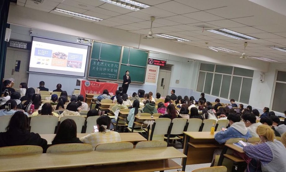 于13教A102开展2022年共青团评优答辩会。学院党委副书记马小佼、副教授张莉、青年教师何波以及辅导员李敏作为评委嘉宾出席本次活动。大一、大二全体同学到场参会。