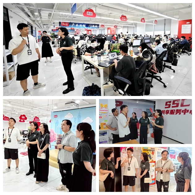 一行人来到公司总部,在公司负责人和人资经理陪同下,参观了员工工作间、休息间和公司荣誉展厅等场所,实地了解了公司运营模式、技术创新成果及人才需求现状,同时推介了学院毕业生。