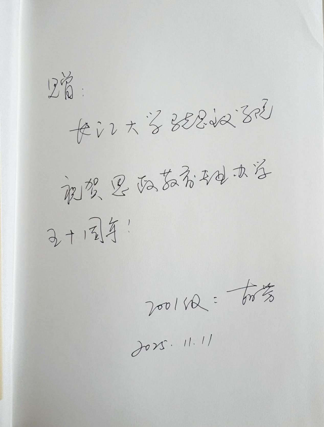负责人代表学院致谢,表示将妥善收藏并开放这批著作,助力思政课教学改革与学术研究,进一步深化与优秀校友的学术交流,推动思政教育高质量发展。