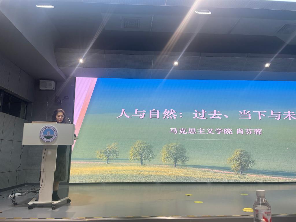 副教授肖芬蓉以“人与自然:过去、当下与未来”为题,带领师生穿越文明长河,深入审视人与自然关系的演变,并着重探讨了生态安全中的战略资源——遗传资源的价值与保护。
